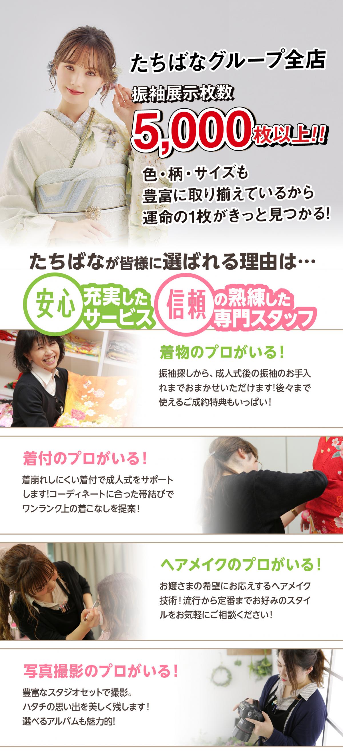 成人式は一度きり!レンタル振袖はお手軽でメリットいっぱい! たちばな・シャレニーでは、レンタルフルパック55,000円から取り揃えています。