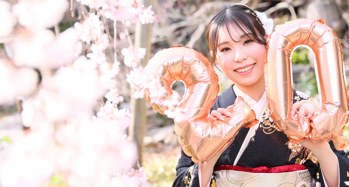 式には出ないけど、記念に写真だけは残したい方へ。 前撮り・記念アルバム・振袖レンタルがパックになった撮影プランです。